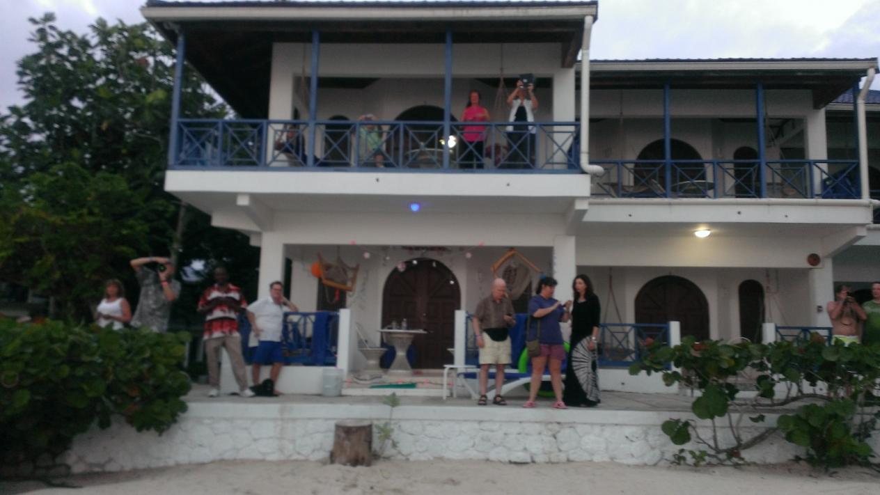 During this day we managed to meet a lot of great people – Steve & Susan from Calgary, Stuart from Chicago, ex-pat Steve w/ dog Kia, Kristen and friend from CT? (damn memory), Lisa & Laura from NY & CT. Most of our group ate food from Allan- Treehouse’s “Rockstar” Chef. He has very good jerk and was entertaining as usual. About 10 of us ended up on the porch for sunset and by the time we knew it we had kind of missed the dinner hour so instead of going out I ordered a large ham, pepperoni, and pineapple pizza and a medium vegetarian pizza and salads from the hotel. They were a huge hit. I don’t remember their pizza being this good previously but we were all truly impressed and really enjoyed them. We kept the porch party going until about 11ish and then called it a night. We may have had a little rain this day – seems like I remember some vaguely.