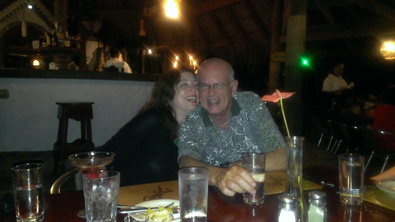 JD otherwise known as Birthday Princess wanted Norma’s at Sea Splash for dinner so 7 of us headed over. It did rain during dinner but we just scooted our table over away from the where the rain was blowing in. The smoked Marlin served like sashimi was absolutely incredible! Why hasn’t anyone ever mentioned this before – or did I just miss it? How did I not get a picture of this masterpiece? Everything from the snapper to the coconut chicken was scrumptious. I would be remiss if I didn’t mention how Geri had all of us absolutely dying laughing. She told a story of how her husband had missed THE shot when her daughter was born by c-section. The story went on and on, getting funnier and funnier as it went along (probably had to be there) and ended a ½ an hour later with the fact that this had all happened 27 years ago and it was a good thing she was completely over it! Yes, what a good thing – she SEEMED completely over it. She could be a comedian. Her timing was absolutely perfect. Turns out that sums up the whole experience - perfect service, perfect meal, perfect company! I did get a picture or two.