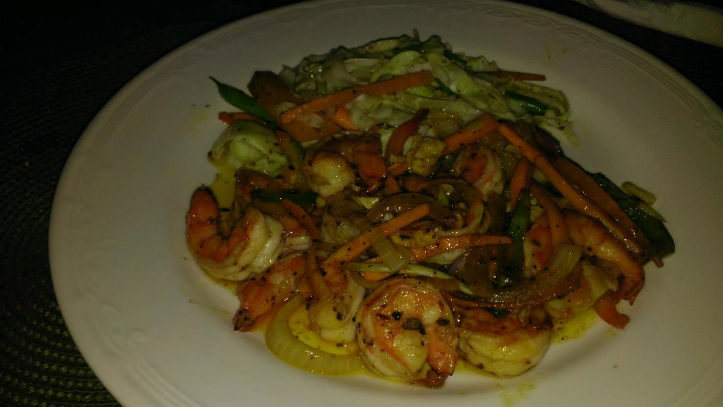 We had decided earlier that tonight would be the night that 8 of us would go to Kuyaba for dinner. After a very nice sunset, we called the shuttle at Kuyaba. I couldn’t get a straight answer as to how long it would be before we would be picked up so after we waited for a while, Gesla insisted on driving us over in 2 groups. All of us made it over and all the Kuyaba 1st timers loved the grounds and the setting. Since we have so many animal lovers in our group, everyone went nuts over the kitties. I know that some people complain, and the staff are NOT FANS of the cats – but we love them and are just trying to figure out how to help them get fixed so they don’t keep procreating. I realize that the best thing for the cats would be if there weren’t so many of them. If someone has the answer, let me know how to help because I would like to be part of the solution. We ordered a bunch of appetizer’s to share, and as always, the sesame camembert and the bacon wrapped shrimp were standouts. I always order the Mountain Pepper shrimp (an appetizer) with a side of jasmine rice. See picture! Everyone else loved their pork kebobs, chicken kebobs, seafood pasta and salads. Best meal of the reach although on this trip it was a very difficult award to give – SO MANY GOOD MEALS! Negril has upped their game in the food department. I live in San Diego and travel to many top food destinations but I have to say that between the ambiance and the flavors of the food, Negril has moved closer to the top of my list than ever in the dining department. First time ever I can honestly say – not a bad meal the entire trip.