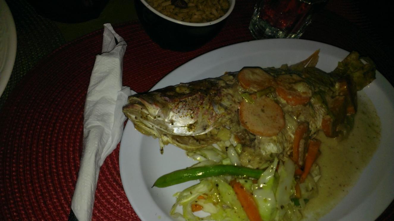 Off to Push Cart. This was my first visit there and the setting was very nice. Gary waited on us and was very professional. He even warned one of our party when he ordered the fried chicken that it takes about ½ an hour to get it. This is so much better than just sitting and wondering why it is taking so long. Everyone enjoyed their food and I would say the standouts were the Curry Conch and the sweet potato “fries”. The appetizer shrimp were pretty small (compared to other places nearby) and were very spicy. The shuttle driver who had been arranged by Push Cart to deliver us had agreed to bring us back and he was right on time. There was a charge for the way home but it was around 250J a person so that seemed reasonable. Of course we tipped the courteous, punctual driver (think he was from Kenny’s Tours.)