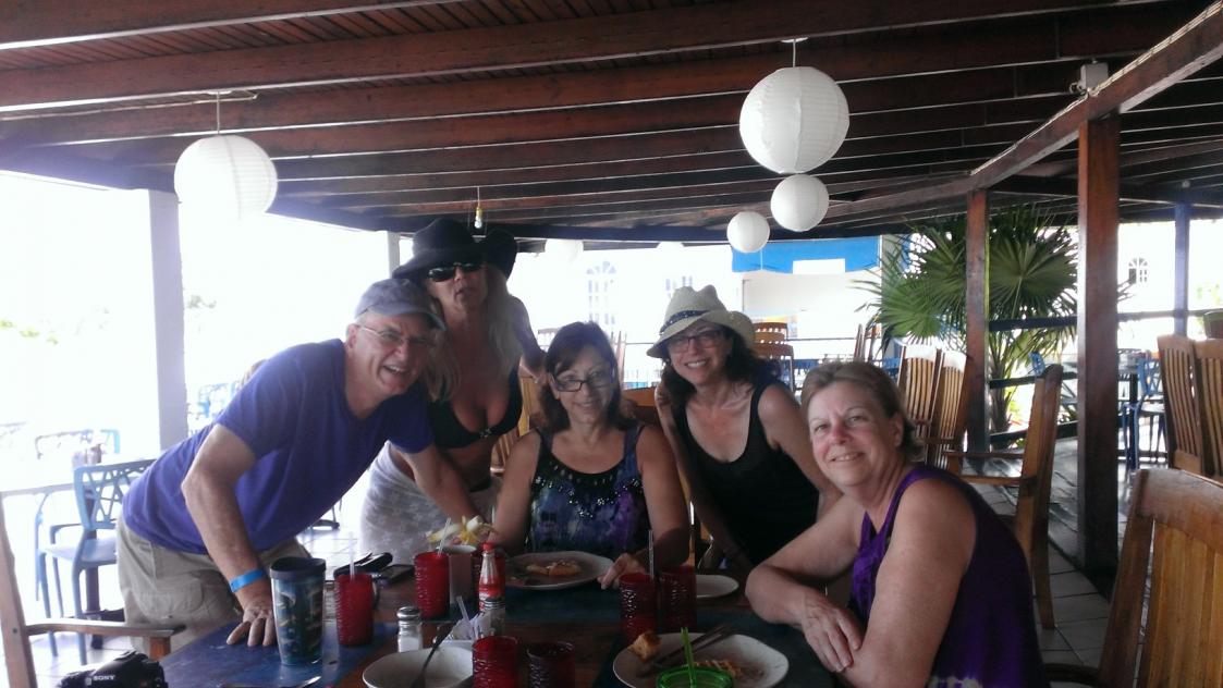 Then back to the hotel for a lovely breakfast with that picturesque view from the upper deck. Today the Birthday Princess arrived early in the day (JD) along with a friend of Tom & Geri’s, Marv, later in the evening. We decide to assume the position – lay flat on a lounge chair – for the day. JK had a rough night and her coughing was a little tough on everyone. We did manage to get a cake ordered for JD’s birthday (carrot cake – always better in JA it seems) and jello shots made for tomorrow’s birthday party at some point during this day. We bring the jello and plastic condiment containers down with us so we just have to ask someone in the kitchen to store them for us in their refrigerator. That’s never a problem either – another reason I love Treehouse. This won’t even be an issue in future trips because of the new full-size refrigerators that the Ocean front Suites are being upgraded with (more on that later!) We can keep the shot in our own refrigerator then.
