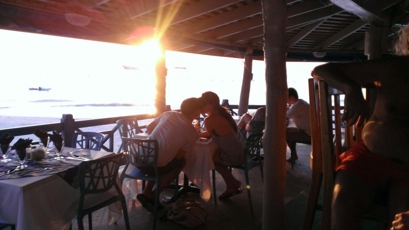 Based on how the clouds were, we decided that this would be a great 3 Dives night. We all managed to get ready in time and get a ride up there. All the way up the sunset was awesome and I swear, just as we walked out to the cliff area, it went behind a cloud and was gone for good! Lucky for us that 3 Dives has such great food, worth the trip even without a sunset. The wait wasn’t too terribly long (probably just seemed longer because of the “fire eater” guy who kept trying to put his hands all over me.) Really annoying. He then tried to convince me (to no avail – I would have hitchhiked alone on the West End Road first) to get a ride back to the hotel with him after the show. Apparently, he is a regular fixture here and I was told that Pauline uses him as a driver but I would NOT get in a car with this guy. I felt molested by the time we were done talking to him. Then while we were eating dinner he started to bother 2 other women tourists sitting at tables closest to the cliffs and they moved to a table by the road to get away from him. This was right before he changed into a leopard loin cloth and started screaming like a banshee. We did our best to just eat and not encourage him too much because there were only 2 or 3 other tables filled and he seemed to focus on us A LOT! I have seen several of these type of performances down here and I must say that this was the saddest of all. His entire act consisted of only 3 different “moves” and a lot of screaming. After his 3-5 minutes “show” he came over and was collecting tips. I gave him 4 dollars US and asked him to move on - the smell of kerosene from him was unpleasant while trying to eat. (He would just stand there and stare at us while we were eating with his tip jar.) Thankfully a bus load of people showed up with several kids and he started his “show” all over using the new people as his foils. In his defense, these people really seemed to enjoy his act and participated fully with him. In my defense, he hadn’t tried to accost all of them over by the cliffs earlier like he had me. He just wanted to “feel” me he said…LOL!