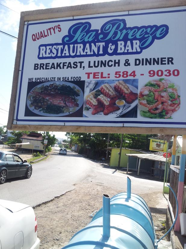 Welcome to Quality's Sea breeze Restuarant & Bar , we are located on the west end rd of Negril at the intersection of the Westland mountain rd,we also specialize in sea food like fish, conch, lobster, swrimp etc, we als do Sea breeze famous Jerk Chicken, chicken any style , oxtail,etc, we open for Breakfast, lunch and dinner {eggs any style,becon, hams, vegetables, etc}, we do natural juices { irish moss, pumpkin, beetroot, carrot, cucumber,mango,orange,pineapple etc