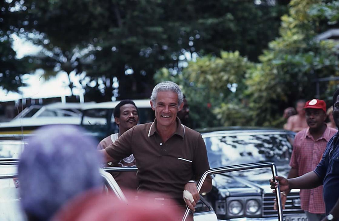 Michael Manley PM, October 1980 at the Negril Beach Club prior to a rally at the roundabout the day before the 1980 Jamaican Elections