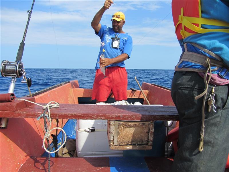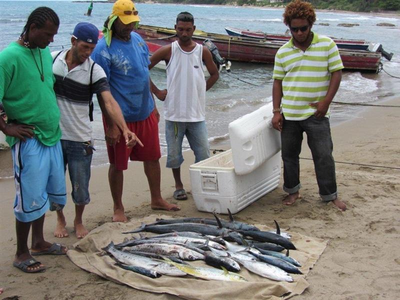One of our earliest trips to Negril I went out with a captain and boat which are no longer there. It was slow season and he wanted to fish so offered to take me out for the price of the gas. We went out beyond the reef and trolled for about 3 hours and caught 6-7 tuna and a barracuda. When we came back in he sold the fish to locals, I remember that the barracuda was cut in half and purchased by two different people.