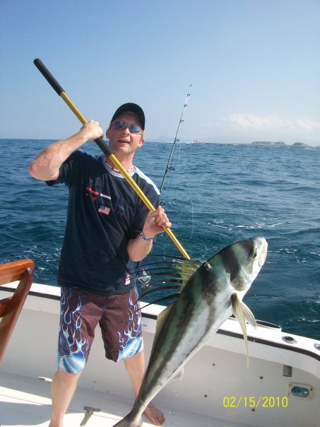 thanks johng! I don't think I'll be making it to ochi to fish, so maybe I'll just try for an afternoon with someone around negril. It wasn't the sole purpose of the trip, so no worries mon! Those are some nice fish and especially the mahi-mahi...mmmm my favorite, lemon peppered mahi mahi...mmm. Heres one of me the last time I was in mexico with a 50lb rooster fish. My other trips have spoiled me but I enjoy trying whereever I go. Negril rod and reel sounds like the answer and I'll take 5lb bonitas anyday, they eat well!!Attachment 40268