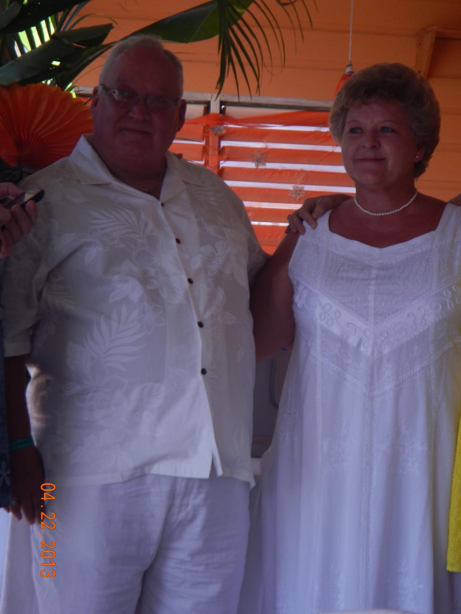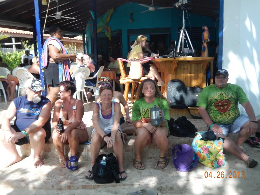 Celinda and Mike we are there and we still have our shirts Chris had made for us all. Right side have the t-shirt over a gold dress. That's Rasta John and Blondie in the front left and Suz and Irie Marie and Estelle and Pirate in front and Chris and his wife right behind them.