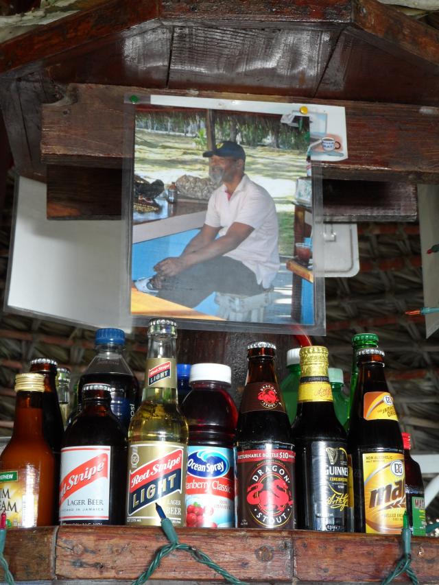 Our first trip on Southwest (Midway/Chicago) went off without a hitch. We took the advise of a friend to buy the early bird package, and glad we did. We had spot A27 &28. The fifth row was great. So glad that we found Club Mobay at Sangster a few years back. I bet we walked past at least 500 people going to immigration. Talked to several line standers later in the week and they spent almost 3 hours in line that day. Note to self, never travel on a Saturday with an arrival time afternoon. Thanks to Club Mobay, we were out of there in 25 minutes. We found Patrick Grandison with Esparanza Tours and we were off to Negril with a cooler of Red Stripes. First stop was at the Digicell store on the hip strip but their computers were down. Oh well, off to Negril. Potty stop and a quick stretch halfway was a very good thing. We stayed at the Grand Pineapple (AI) again with this being out 35th night there. Love the place! We used some Pineapple Perks points and we were all in with flight and hotel for about $1800.00 for both of us in an ocean view 2nd floor room. The staff was great as usual. The Digicell store downtown was closed by the time we got to Negril, so the phone calls home would have to wait. Sunday wakeup was to beautiful skies and calm seas. After a quick breakfast it was time to see some old friends on the beach, including the famous Gilbert. Our biggest decision of the morning was to either walk north, or south. Flipped a coin, north it will be. Our first stop would be at Tony's Hut for a reunion with our favorite bartender Grace Ann. We love her and her dirty bananas. Wearing a tiara, she was the princess of the beach, and we were her loyal subjects.