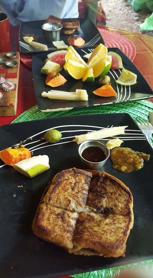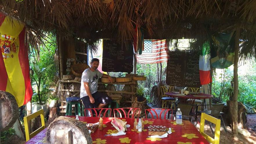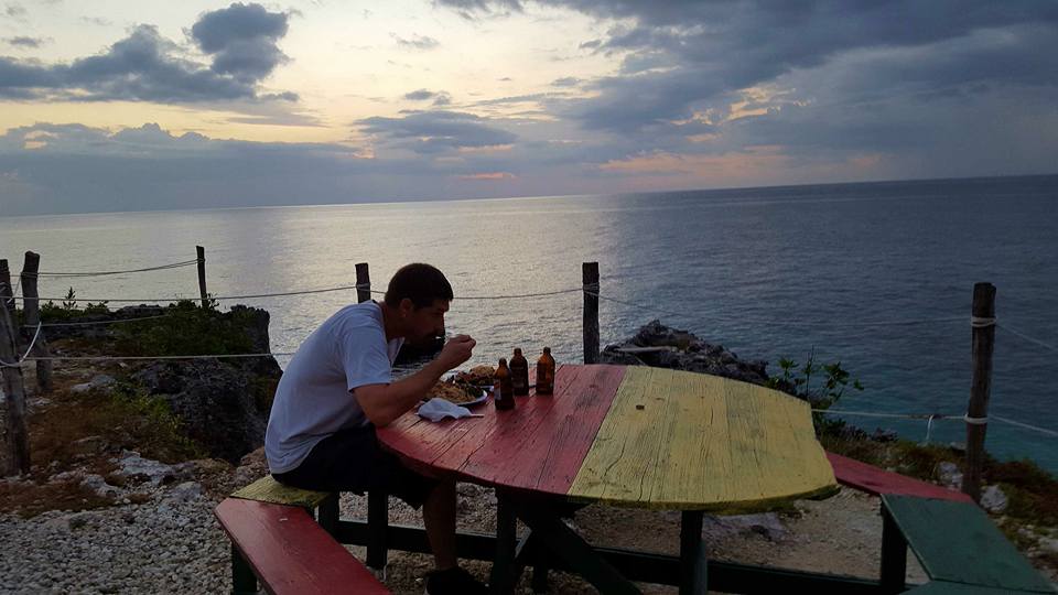 Up with the sun again. Breakfast at Xtabi, this time with cheese in the omelet. Not the best call… it was more like oil than cheese. Oh well, no problem. Husband has eggs and bacon. He has no complaints. Well, 1 complaint. Hung over. His breakfast has decided it doesn’t want to stay down. We head back to the room. After he recovers from his traveling breakfast, we snorkeled for a bit by the cliffs and caves of Xtabi. We saw a few really cool fish and TONS of jelly fish that scared the hell out of me. No stings though. I think they must have been harmless. The water is so beautiful, but the waves eventually wear me down and I can feel a little motion sickness coming on. We head back to the room, change out of our wet swimsuits, and husband wants us to take a nap. I lay down and try. 30 minutes or so I give up. Wasting precious daylight…. I get up. I shower, clean myself up, let the husband sleep a while. Finally I wake him. The days a wastin. Let’s go find some lunch. I want to eat somewhere else than Xtabi. 3 Dives next door is supposed to be good. We start walking. It’s 2:20. 3 Dives doesn’t open until 3… we keep walking. The next restaurant… also doesn’t open until 3. Keep walking…. Then, Sips and Bites. We step up into the metal shack and take a look at the menu. I order stewed beef, he orders stewed chicken and curried chicken split. He still doesn’t seem to be feeling well. Doesn’t have much to say. She brings us soup. I SMASH it. SO GOOD. I didn’t know I was getting soup . It starts to rain… I sit, admiring the art work on the walls while listening to the rain pound on the tin roof. Everything seems to happen the way it’s supposed to here. This moment is good. She brings our food. This heaping plate of awesomeness that looks, smells, tastes and feels like something someone’s grandmother would make. I’m killing it. Husband is picking… feeling queasy again. She brings a box, boxes and bags up his food, and I tell her, nothing personal, very delicious, he just drank too much last night. She refills his water and tell him he needs to hydrate. She was very sweet. The rain is REALLY coming down. Pouring hard for at least an hour now, maybe more. We just sit…. It was really nice. Eventually though, I had needs that required we head on back to our own restroom (I’ll leave it at that), so rain or no, we needed to walk. We barely hit the step when a gentleman inside the restaurant asked, “Taxi?”. Perfect. Every moment is as it should be. We head back to the cottage. Husband rests a little, then tries to eat more of his lunch. He got some down and kept it down. Started feeling a bit better. We head out to the deck by the patio/bar. He decides to do his first jump. He picks a height that I cannot argue with and he goes. Of course, he loved it. I got out my pool float and road the waves awhile, while watching him snorkel some more. We skipped the alcohol, but soaked in the atmosphere with Danny and Jill. Discuss dinner. I want to leave Xtabi for dinner. We share a taxi with our new friends to Push Cart. I had the big coconut drink to start, husband has a single Red Stripe. Jerk chicken for me, can’t remember what anyone else had. Pretty good though. We discuss going somewhere else when dinner is done. Nah, we are tired. In cottage, in bed by about 10ish.