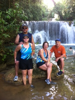 YS falls what a gorgeous place. The us two girls did the Zipline. Somehow we got a price of $35. I’m not sure how that happened as I believe it is $50 but I’m not complaining. It was a lot of fun and better than I thought. Thank goodness I had been exercising prior to this trip or I would never had made it to the top without multiple rests. YS falls has lots of stairs. After the Zipline we had a guide show us all the different areas. I’m not sure if this is required each couple gave him $5 and was kind of nice to have some pictures of the entire group taken. You have to do the swing if you are a swimmer. Lots and Lots of fun. The water is cold and refreshing. After the tour we went and tried to find food as Ashton said some was available but it was hot dogs and salads. Not what we were looking for. We spent a little time in the pools and it was about 2:30 by now and I we were all hunger so we headed up front. There was a small restaurant and we had a snack but knew we didn’t want to eat a bunch as we would be heading to dinner when we got back and cleaned up. So we had festivals and rice and peas. These were excellent and cheap. I think I spend $5 for that and a coke. Plenty for 2. We got change and headed to find Ashton for our ride home we all dreaded.