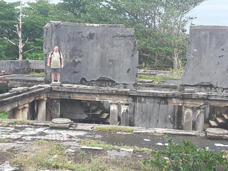Next morning - we had our yummy breakfast and hit the road to see if we could find Folly’s ruins before heading back to Negril. Of course there are no signs to find the place and being Monday morning it was hopping in downtown Port Antonio. We hit up the Cambio to exchange Cdn to Ja and then went to the Marina. There Johnmaica ran into a fellow by the name of Sweet John who agreed to hop in the bus and guide us up to the ruins. (If you need a guide while there his number is 825-4169) but I don’t believe he has a car.