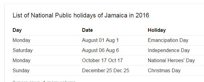 August 1 is Jamaica's Emancipation Day .... a national holiday