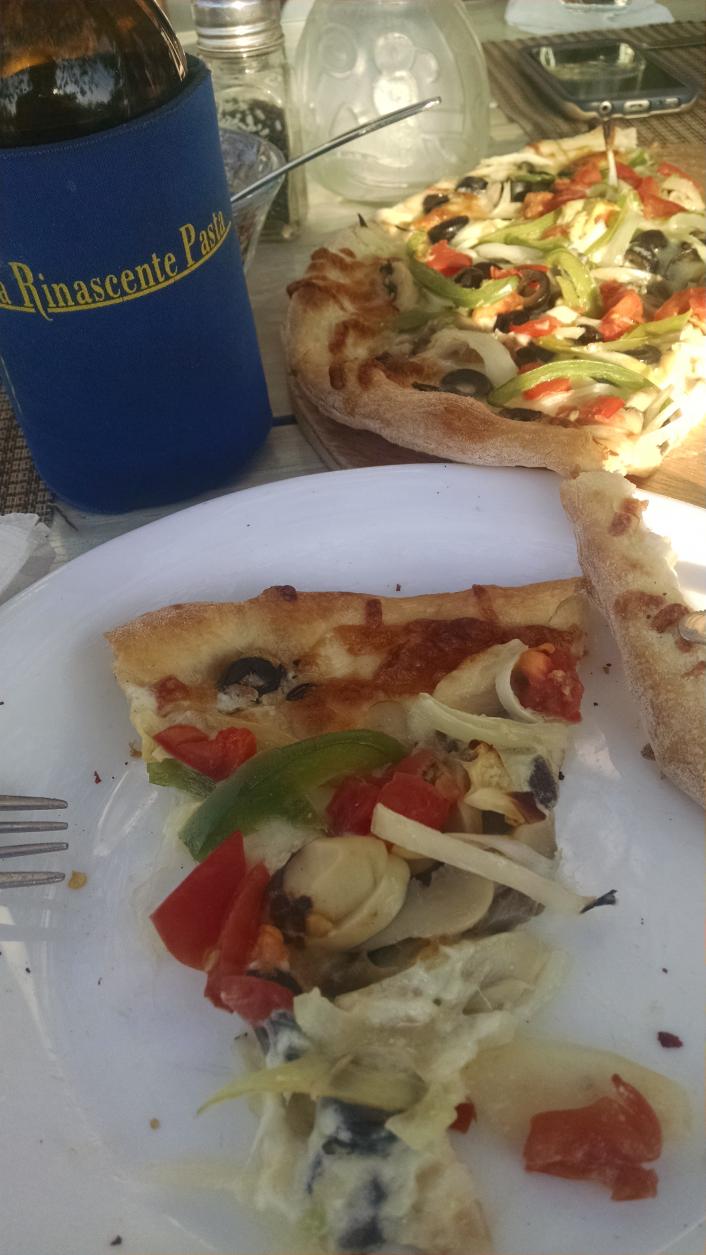 Veggie Pizza with Alfredo sauce at Kenny's Italian (not on the menu,our request)