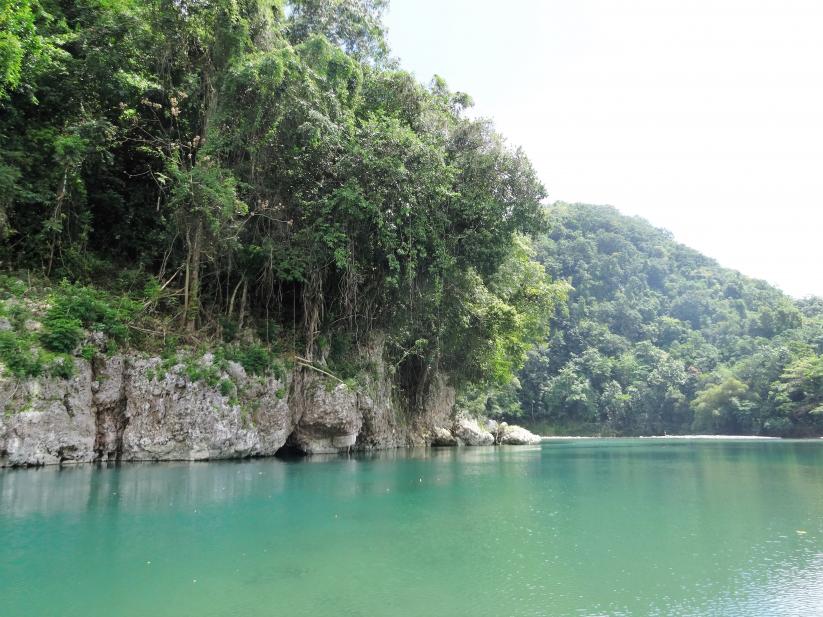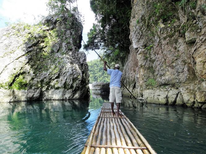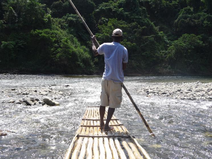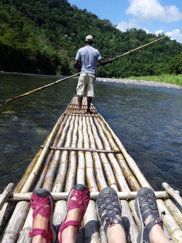 The raft trip was amazing! These photos will not do justice at all to the beauty. We did not see a single other boat, car, house, power line, or anything man-made on the entire trip down the river. There were two other bamboo rafts at Belinda’s cook shop on the river bank, where we stopped for lunch and a couple Red Stripes mid-trip. We saw one man fishing on the side of the river during our float and I guess we also saw a few banana trees with blue bags on the hanging fruit. And I also must note that I did not see a single piece of garbage along our route. The water was clear and perfect for swimming and wading around in mid-trip :D Like I said, it was amazing!