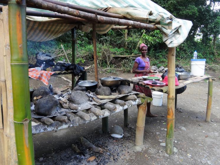 After paying a $200J per person fee at the entrance to the beach, we wondered over to the first little cookshop/bar on the beach to see what was cooking. We hadn’t eaten anything other than snacks and fruit all day, so it was time for some delicious chicken and rice and peas, with this view :cool: