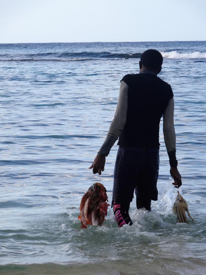 Watching the Jamaican lifeguards can be amusing sometimes too. This one was determined to keep his shirt dry.