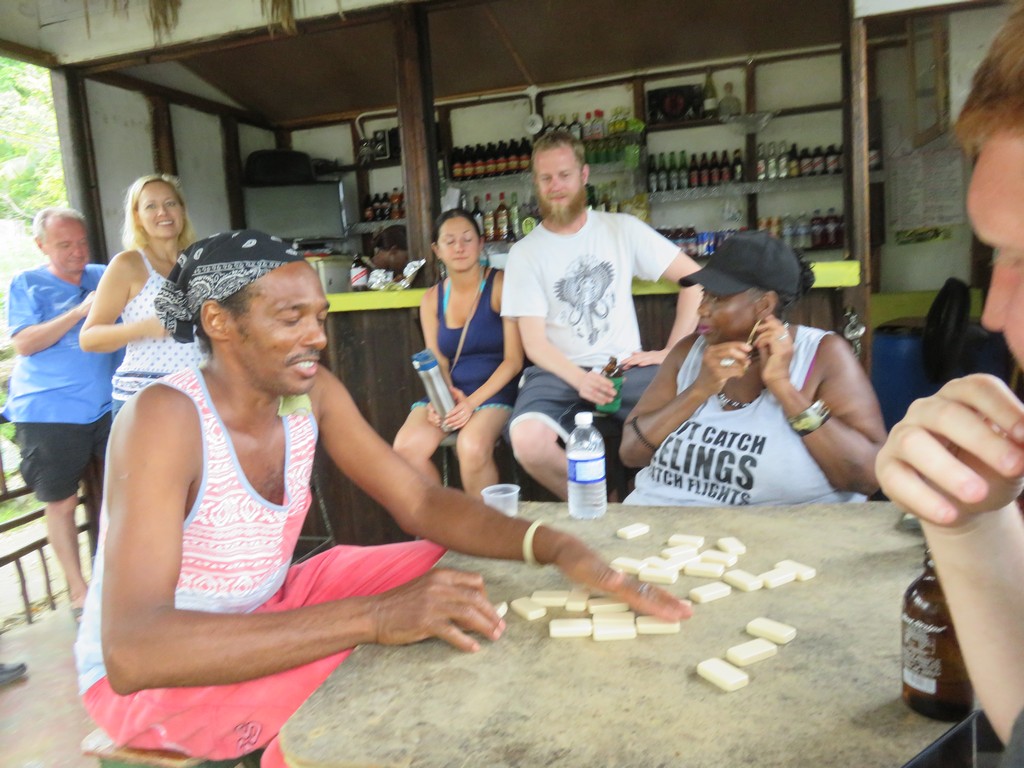 I forget to take a picture at the stop at Negril Spot but the next stop is a fun one at Hillside Chillspot Bar & Grill! Redskin (of 3 Dives, DeBar and Kool Vybez) provided the spices jerk chicken! And the dominoes are slapping the table!