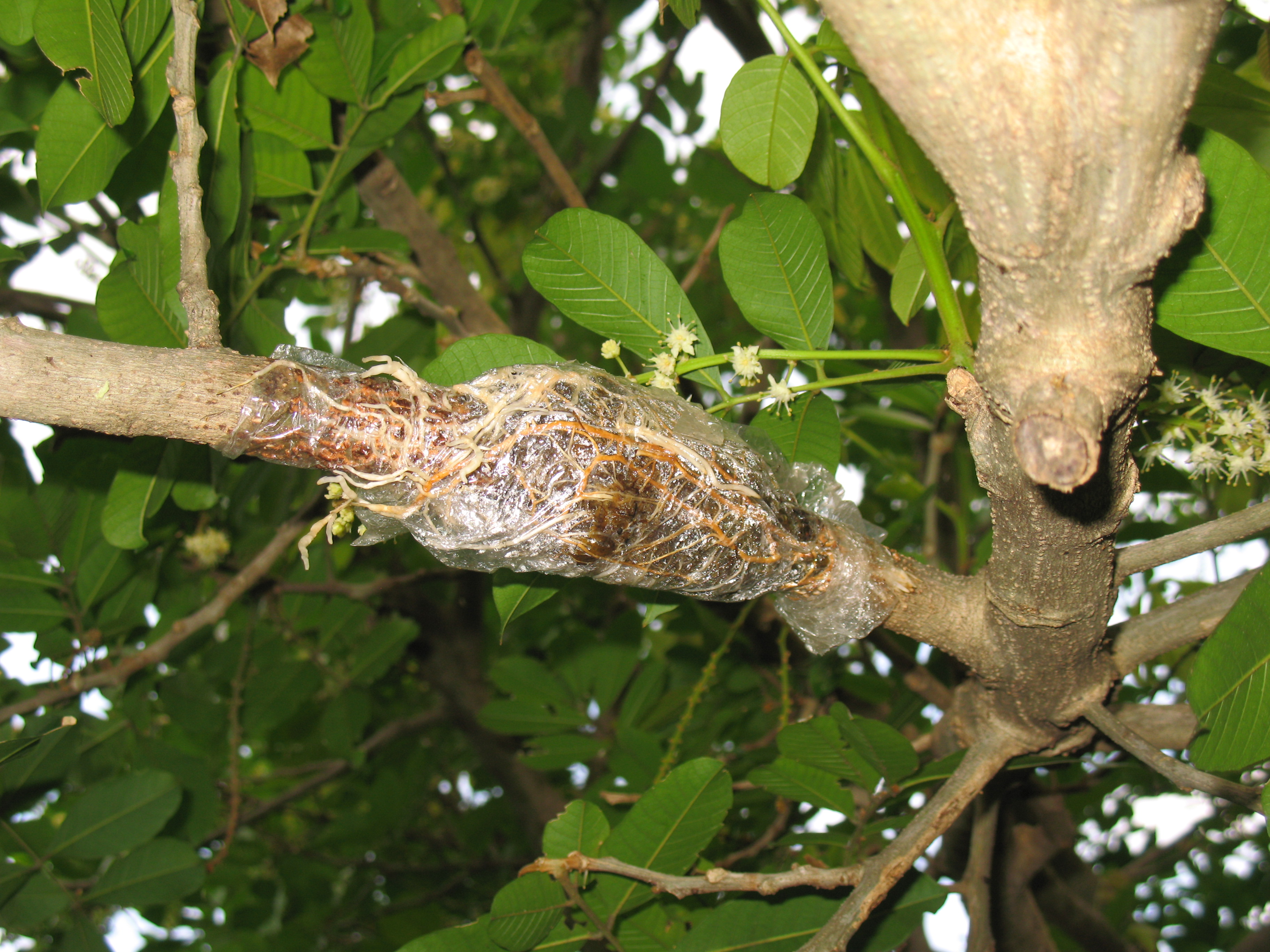 here are some pics of how I air layer my ackee trees (and all other fruit trees)...use wet sphagnum peat...wait about 3 months, or until sufficient root growth appears...will immediately start bearing fruit...