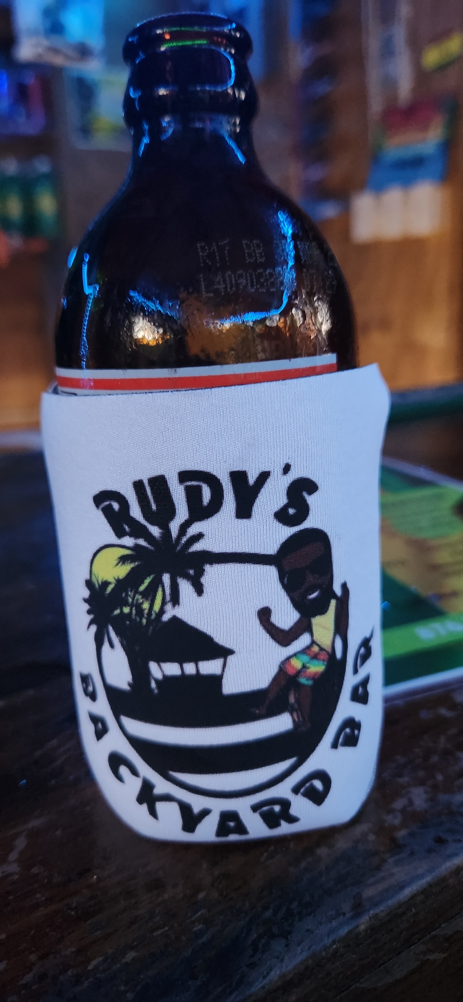 Of course, I didn't want my red stripe to get cold, so I bought one of Rudy's coozys.. lol