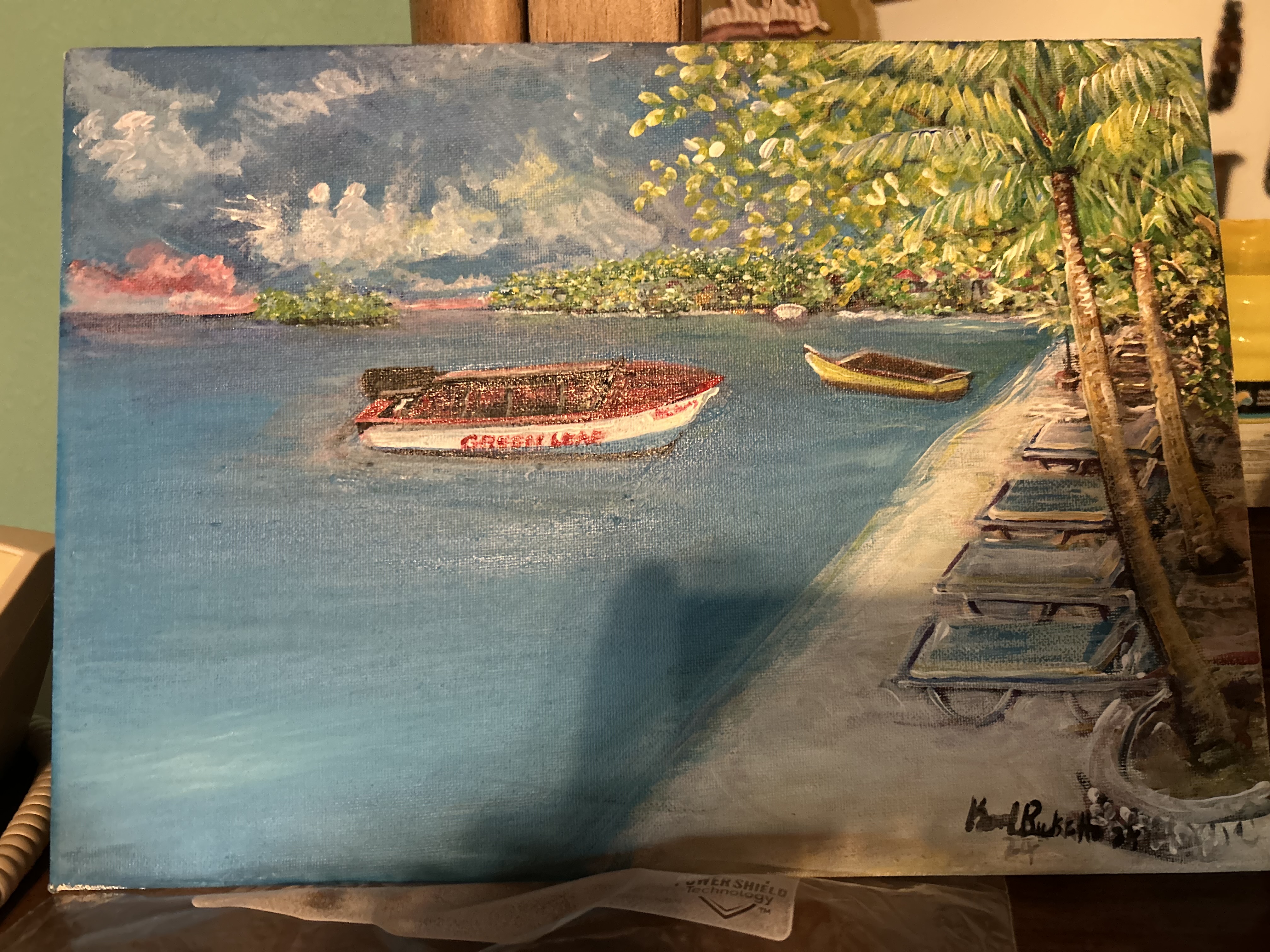My Friend commissioned a large piece right off the bat, to be picked up hence later in the week if canvas could be found. We also had him commission customize our second small piece with a specific small boat we love. It was so good to see him and have a pop up art show.
