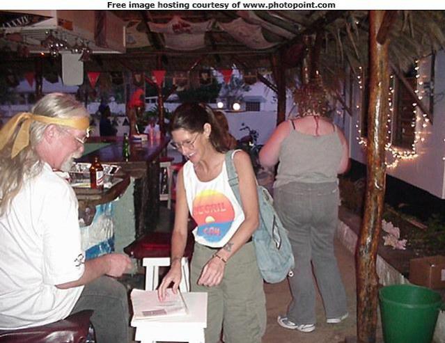YIKES so the guvment seized it (Pickled Parrot), wondered what happened to it, last time I was in JA in 2009 ppls said it was closed ... I loved the carved birds they had in there, and the hamburgers were delicious :) Okey here is the pic of me & Pirate at the "meeting of the Board" in 2000 ... WOW was that ever a blow out, people from all over came for it. I still have the Negril.com shirt :)