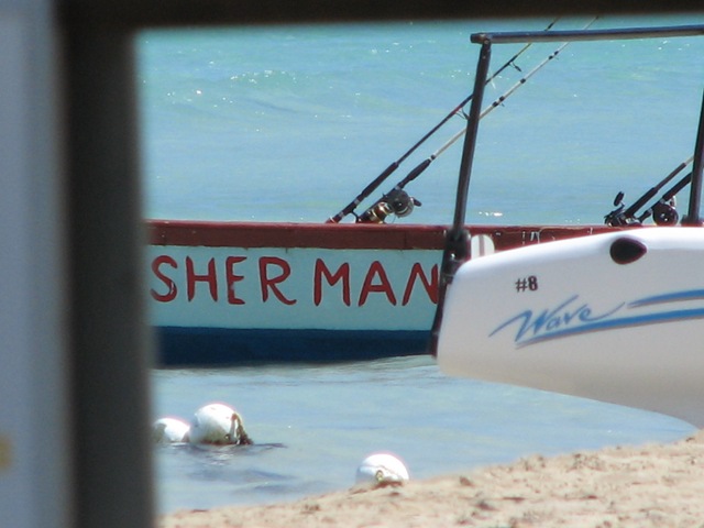 Was sitting in my lounger and noticed a boat that had "FISHERMAN" on the side. I had to time the waves for about an hour to get this shot. Our last name is Sherman, and we both love to fish. Thought it was pretty cool.Attachment 10107