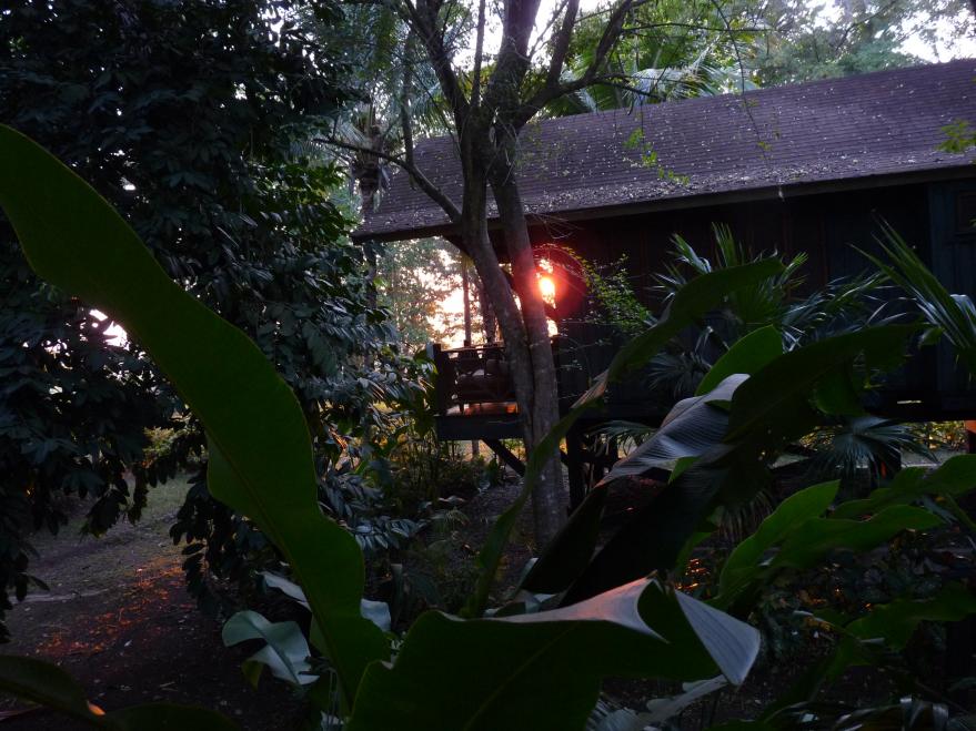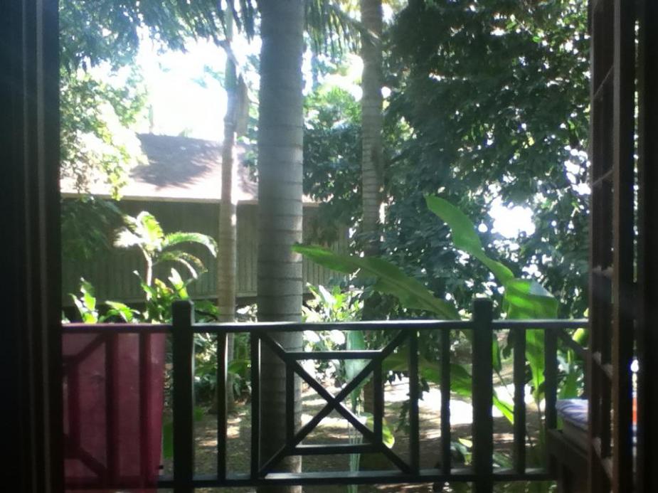 My room is clean, inviting, and sits up in the trees. The verandah has a day bed that I will spend many hours in the trip lounging on and reading. I never hear voices when I am in my room, not from the fellow tourists or staff. I am conscious of this and do not play music or talk loudly. The TV watches me, but I don’t watch it during the duration of my stay. I rarely need the AC because the ceiling fan moves the air from the three walls of ventilation around.