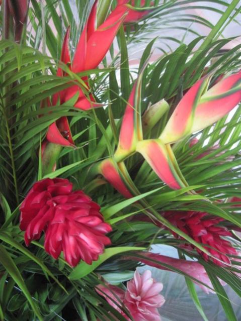 The afternoon shower is so nice to cool off and listen to – it has been dry here and they need the rain from what my driver told me coming in. Met a cool lady vendor and she let me take a picture of her hairdo which was super fantastic (lol). I was drawn to the centerpiece in the lobby….lobsta claws and ginger…oh so pretty.