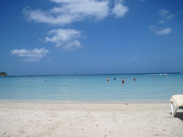 Hit the beach at 11:00 and right into the blue blue sea. I just bobbed and swam and danced to the reggae sounds from the shore. I came in to dry off and meet my JA author friend in the lobby to pick up her books I carried down for her and could not believe I had been out there 2 ½ hours LOL. Ahhhhhhh Note: First time I called non-personal items on my duty form and brought receipts (had books and yarn). It was actually faster and I was the only one and long line at nothing to declare line. She was cool and I even gave her one of the books (spiritual poetry). No duty – I guess we have up to $500 worth before charged. But glad I was honest and it was no big deal.