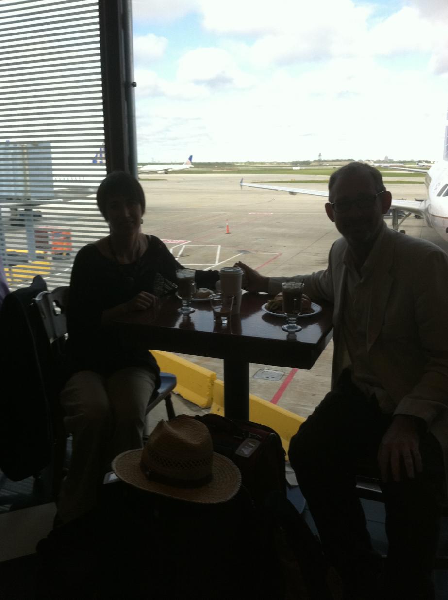 The only applicable photos I have from Saturday are from O'hare in Chicago. $30 worth of Irish Coffees sitting in front of us with our plane to Mo Bay out the back window...