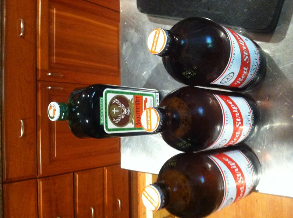 But, it's my birthday and my Pooper walks in the door with 3- 24 ounce Red Stripes and my brother follows her in with the Jager. And they know I have to get up early for work...... Tomorrow is going to be rough.