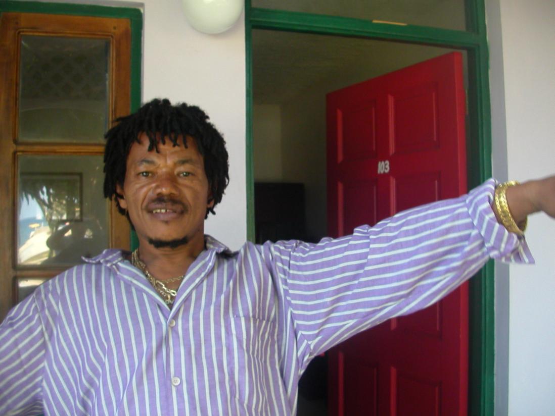 this is Jumbo when he was playing at Samsara back in 2006 (or around then). He was great--he had pitch perfect voice and guitar and we sang a ton of bob marley songs together. He found out that I liked the Marcia Griffiths version of Knocking on Heavens door and busted out a perfect rendition for me the second time he played there during my stay. um--he does not have freaky ghoulish eyes like in the shot I took, it is just me not knowing how or taking the time to correct the photos.