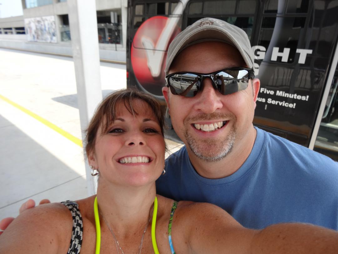 At the airport & ready to go! I am so not a fan of self arm-stretching portraits!
