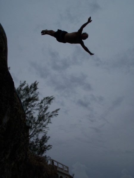 Say an aging but adventurous man wanted to jump the cliff at Rick's for the first time. Any advice to avoid injuries? I've heard from a certain Evel Kneivel-style tourist from Wisconsin to "be like a pencil" but does that mean arms up or arms tight on the sides?