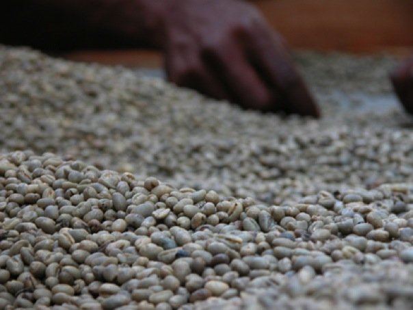 sorting coffee- this is often done by hand and it is grueling. you are looking for peaberry, any weevil damaged beans, stones, etc.