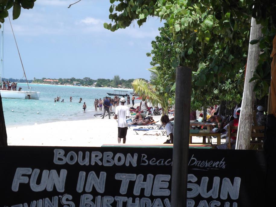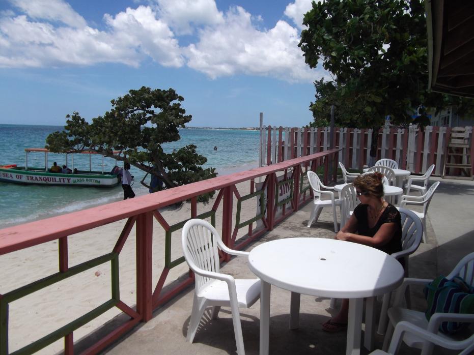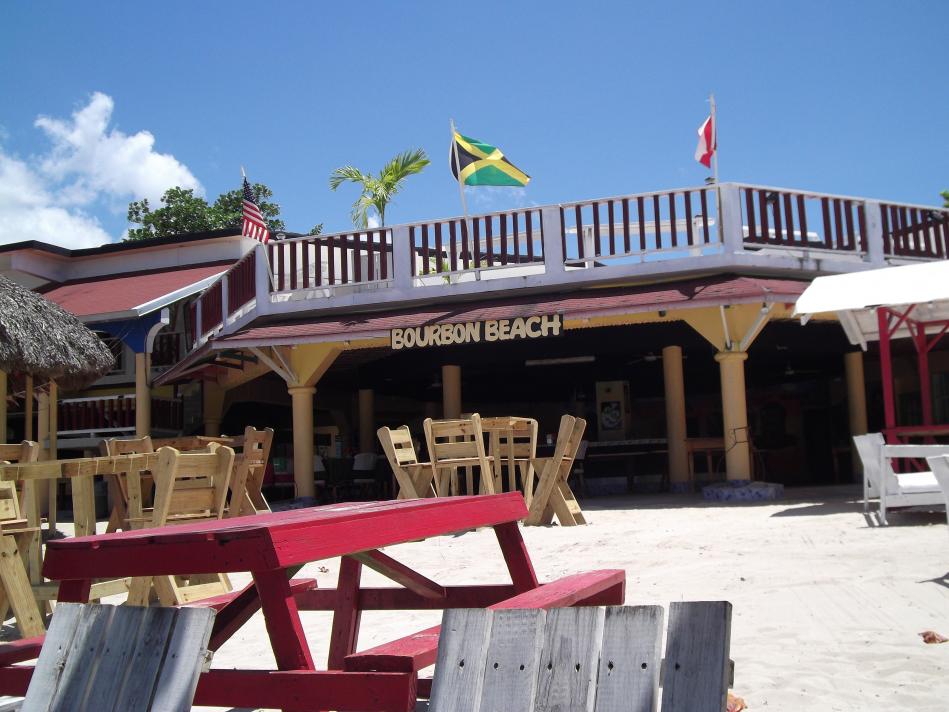 well, softball trip cancelled, so we have extra day or two on our hands. we enjoyed rhodes hall our last reach, Janet and Anita at rhodes hall had a good time together, foound the best subs ever near there, and lets just stay there for one night. we will get some jerk from biggas, relax on the long travel day, and bust in on negril all rested up. good plan. never got a response to several emails to rhodes hall or phone calls to anita. change of plans. saw the deal at bourbon beach, and so we will try this for one night...a little worried cause we never noticed that they had rooms there, and on our last trip in 2010, a big sailboat was in the middle of the dancefloor cause of the storm, and bourbon beach was not really open for business. but our friend ann was right behind the stage. so lets do it....so here we go....