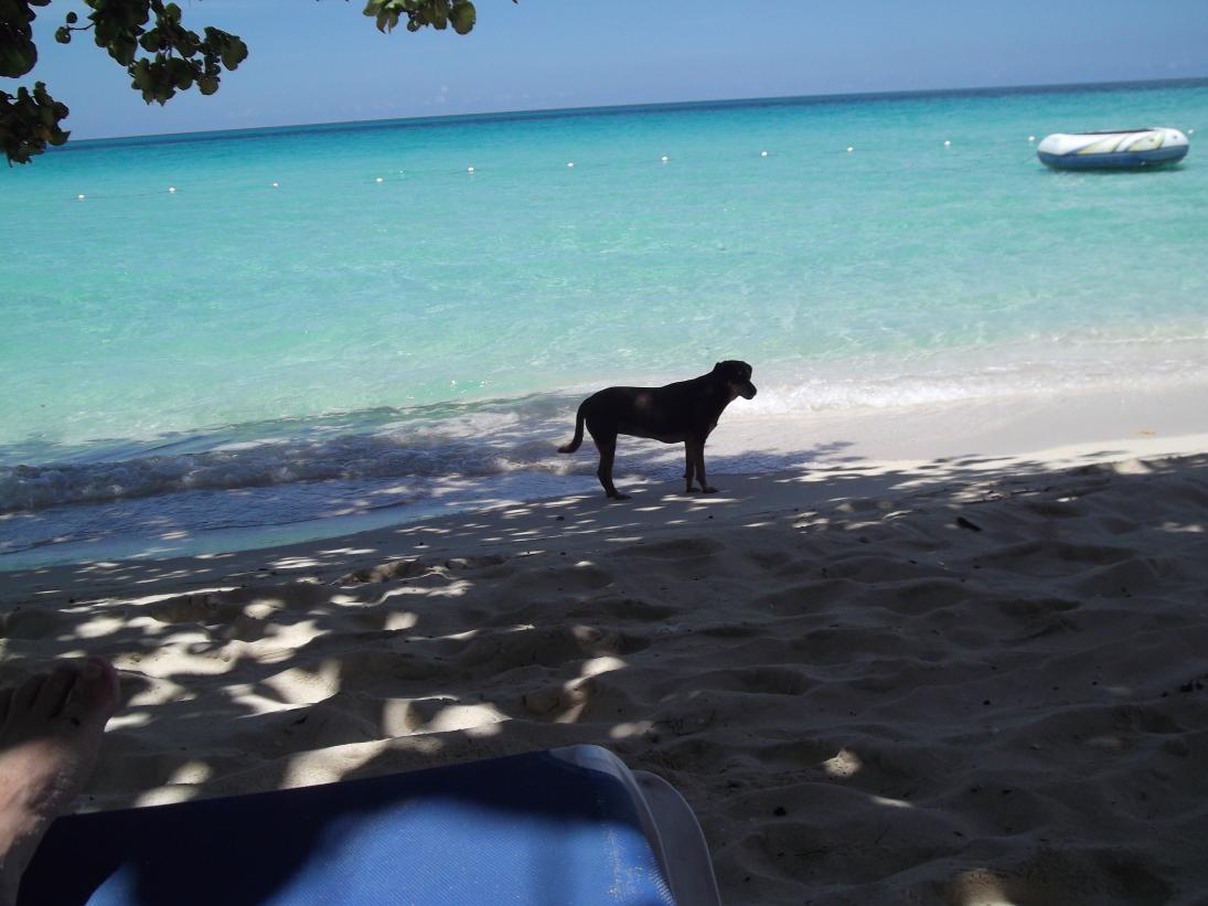 for supper we had a burger and another round of jerk.....we drank and unlimited number of beers, had 2 meals each and with the deal, well at this point, still don't know how much we owe, we haven't checked in yet....did meet kevin and he said he would get with us later...ok....we sit in hottub, sunday is movie night at BB, they set up a screen and show 3-4 movies, pretty cool to sit on deck to overlook the sea, and watch a movie...fastcar and I walk to alfreds, I took 10.00 with me, pay 6.00 for me to get in, and give him the 4.oo left...alfreds is dead, I enjoy a sub, and then I am feeling dead....head back after about 3 songs, and just sit on the deck, watch movie...i remember patrick from last trip, he hung out near ann, and he comes to me...you are the one who likes dogs, right, I say yes. He says you gave bella foood, I say yes I remember bella well from ast trip, well bella is mine...2nd case of many incidents that someone remembers something that happened 2 years ago, and I make them prove they really remember...