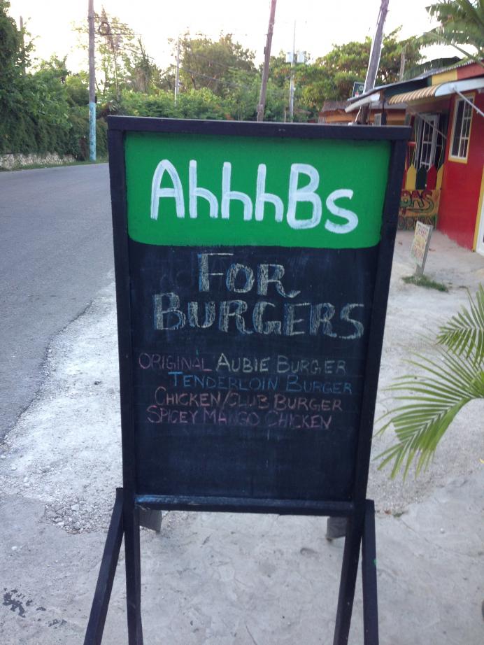 Make sure you get the Aubie/BBQ sauce on your burger. Good stuff, great vibe, and Aubie just knows how to make sure you enjoy yourself while in his company. Great place to hang out at if you are staying at Seastar, Catcha, Tensing Pen, Banana Shout, Catcha Gardens, you get the idea.... He has bacon too and his hamburger buns are solid. Decent price on beers too or a rum drink if that's what you wish.