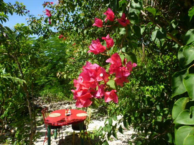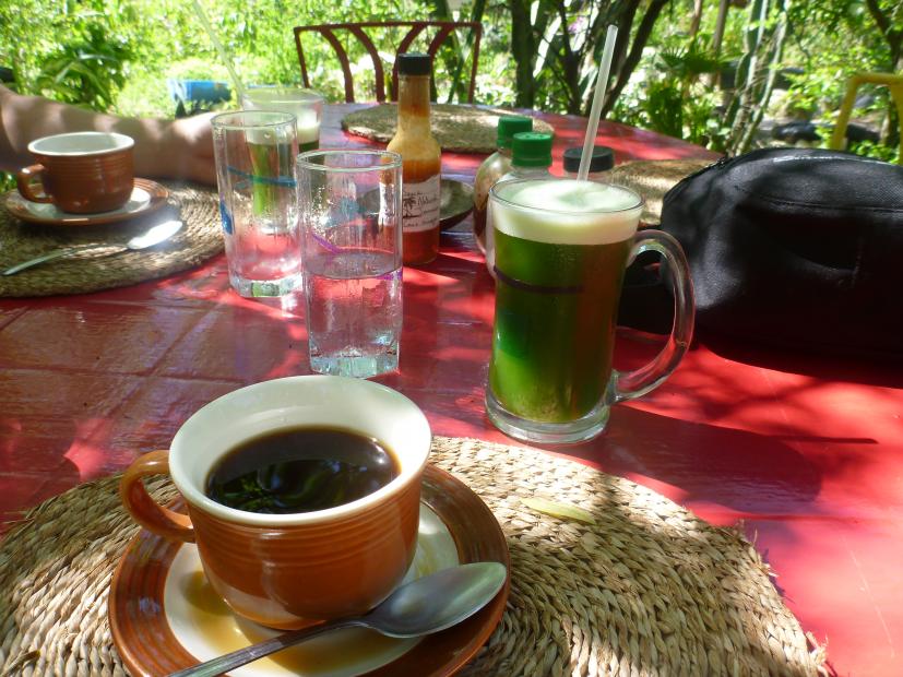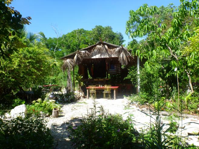I got up around 7 feeling great! Grabbed a cup of coffee and brought it back to the room. Took a shower and went out on the veranda with my ipod to swing in the hammock and listen to Damian Marley. +1 was still crashed and I wanted to let him rest. Around 9, he got up and we decided to head to Just Natural for breakfast. I had some solar powered multi-colored lights for their new (old) garden.