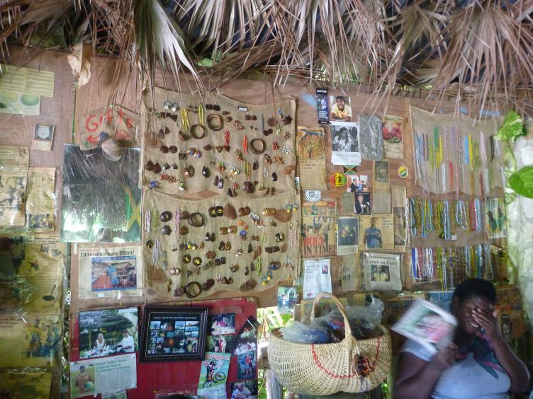 We hopped in a route at the end of Hylton and hopped out at Wise Choice. Needed to grab a few neccessities like overproof, sorrel juice and a fresh pear. We milled about the market. I had to point out the "Cock Soup" mix to +1, lol. Eventually, we made our way back to Seastar to switch bags and head TO DA BEACH! First stop. Kuyaba. DJ was working the bar. Order up 2 OPs and Ting and a pepper shrimp.