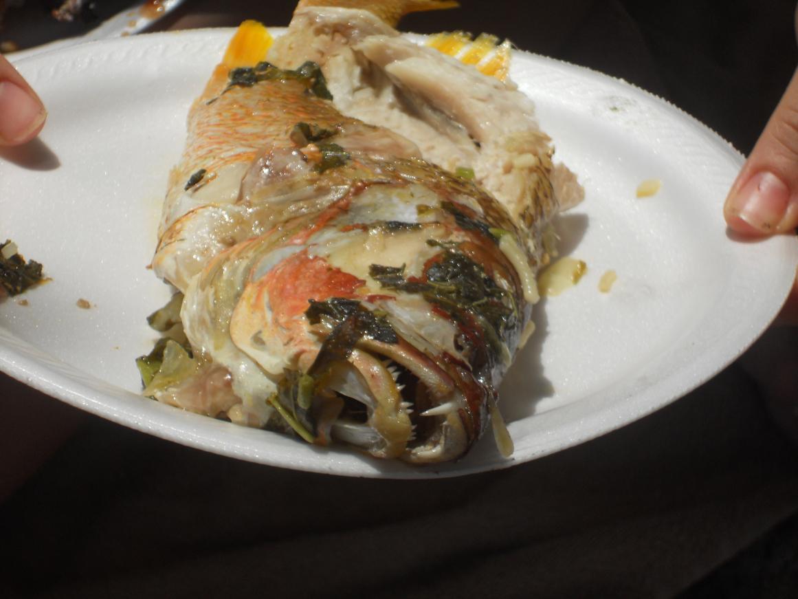 We watched as they started cooking our food which was brought in from the cages right in front of us. We watched as the guys demonstrated their spear fishing and they even let us try. We were not successful, but it was still fun trying.
