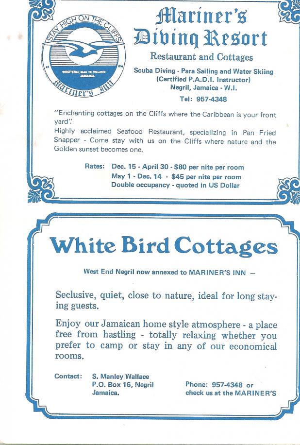 here is the 1994-1995 Negril Guide. It marks the first time that the inside front cover advertises the Coral Seas Hotels which included the previously unaffiliated Gold Nuggett which previously always occupied the inside front coverAttachment 20891. You know these resorts today as