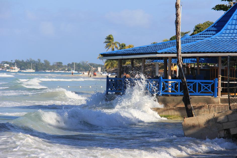 These were taken at the north end of the Country Country beach, looking up towards Negril Treehouse. The waves were pounding all day on Saturday and this is what happened to the beach...