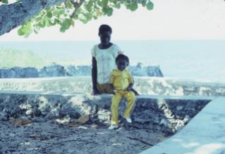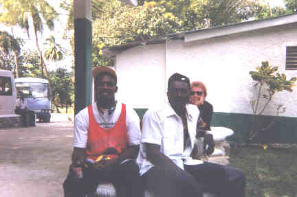 Hundley's mom live just across the road from Belvedere so off we went up this one lane road that parallels the main road for a while and then veers up a valley for a mile or so. Milton stopped the car and we all got out and walked down a path, through a bottom and up the hill to Mom's house. Mom wasn't home. She had an appointment with the doctor in Montego Bay. But we did get to meet Hundley's sister and her little boy. The house has only two rooms but it was immaculate. Hundley had it all painted just so. Nice carpet and a beautiful formal dining room set in the kitchen/dining room.