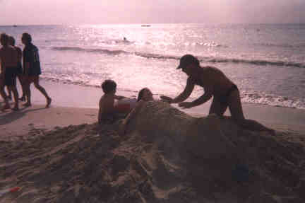 @#!%*@!!$ automatic camera went long on us so I had to find a replacement. Put it back in the suitcase and it just kept windin’ and flashin’ and making all kinds of camera type noises!!! Walked up the beach to Tree House and found a $19 plastic camera. One f-stop, one speed and no flash… sheeesh! Met Coinmon doin' his thing out by the bar. He really has a lot of nice coins. We looked them all over and Kay bought a 20 J coin. Real nice stuff!! On the way back Kay got her first look at "Naked Mon" at Firefly. Wow! Should have seen that double take!! The guy was laying on his side with everything hangin’ out the back! Geeez! Bought 4 pipes for gifts from a vendor and when we paid for them he asked, "ya wan dem pipes loaded or unloaded". We laughed all the way back to Charela.