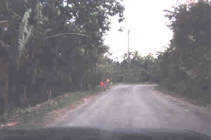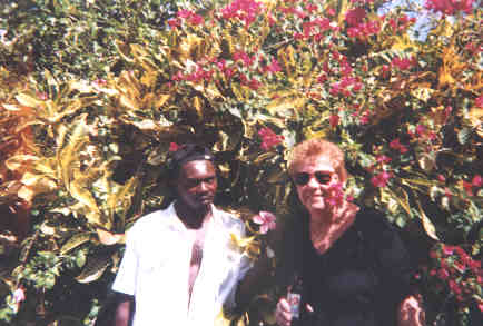 It was a great tour! He showed us all the vegetables they grew. Even gave us some Okra and Bean (Red Pea) seeds for our garden back home. Of course we had to go way back in the bush to see the Ganja field. The trail wound through the bush and in some places you couldn’t tell it was a trail at all. We would cut through sticker bushes and back on a trail again. We finally came to a small clearing with Ganja plants in various stages of development. I asked if I could take a picture. “Yah Mon” and struck a pose with one of the plants and the super-spliff he had been smoking since we met him on the road. I think maybe Farmer Pat had done this a time or two. hehe. He even offered us a big bud right off a living plant but we told him he had better keep it. Didn't think I needed to be wandering around the West End with plants hanging out of my pockets. We tipped him 100j and hit the road again.