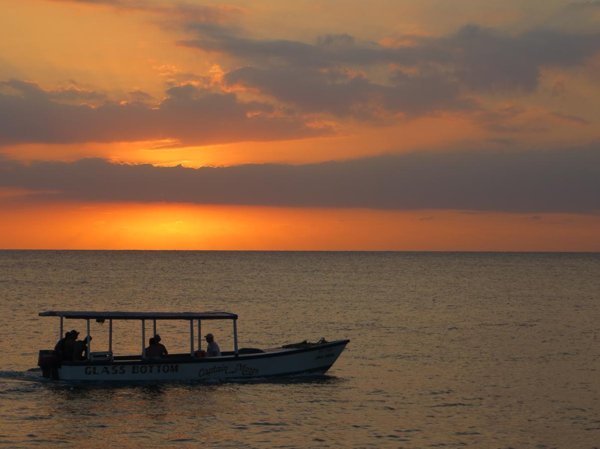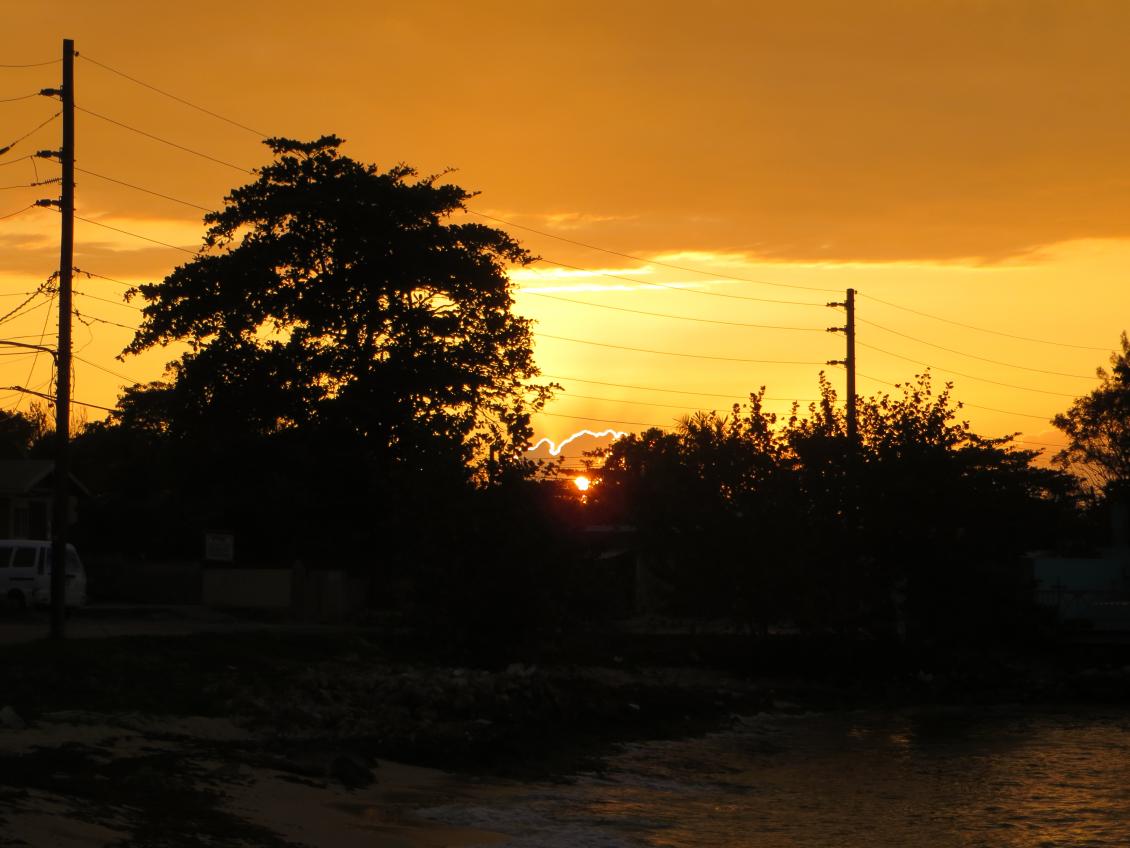 Most of our afternoon Happy Hours occur at the Canoe and tonight was no exception. I am a lover of the Rum punch and you can’t beat the price ($400J for 2). There were four of us and Melo as usual drank Red Stripe and the other three of us drank rum punch. Here is a picture of the bill, keep in mind that each tick mark next to the Rum Punch actually means 2 punches. Our driver helped Melo out on the Red Stripes, she can drink, but not normally 5 in an hour!!!! Also some pictures of the sunset from Canoe, you don’t get the sun from there, but I really like the different colors in the water and in the sky that you get from there.
