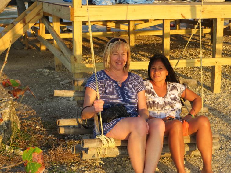 We heard music and sure enough next door at the Boat Bar they were having their standard Friday afternoon band. We walked down to the water (much more beach at Rondel now compared to when we were there in October) and splashed around while drinking our beers. Life had all of a sudden become just about perfect….Red Stripe, check, Reggae Band, check, Good Friends, check and most importantly Melo had a huge smile on her face and looked like she was home, super-double-check!!!