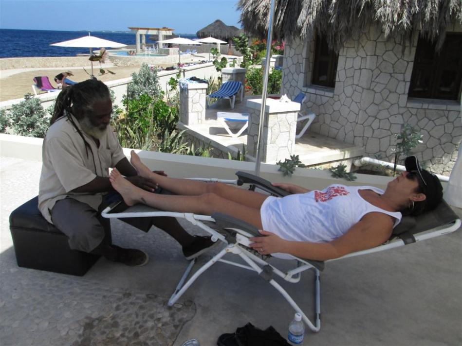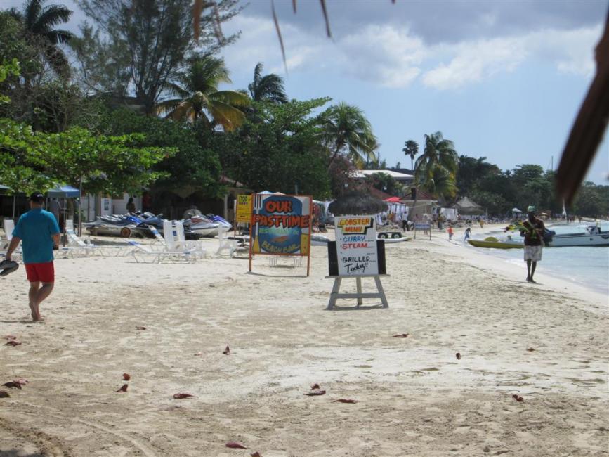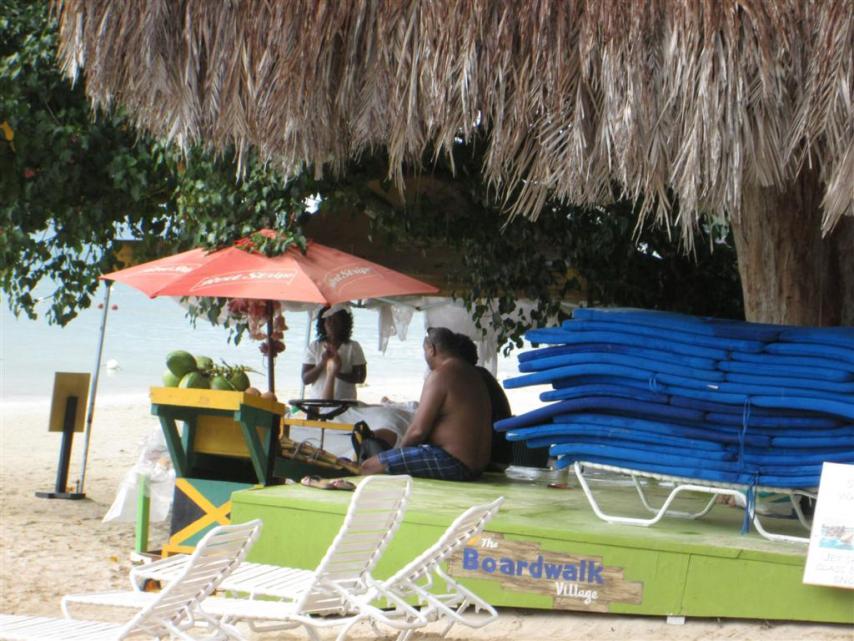 Wednesday I went to Boardwalk Beach with my sister and her new husband. They went for a couples massage and Dawn does a terrific job . Richard - Cathy’s husband chatted it up with the fruit guy on the premises who told us he would reserve us the same spot as we were coming back the next day with the rest of the troop. We had befriended a couple of nice ladies from New York who were staying at Seastar and it was their first trip to Jamaica.