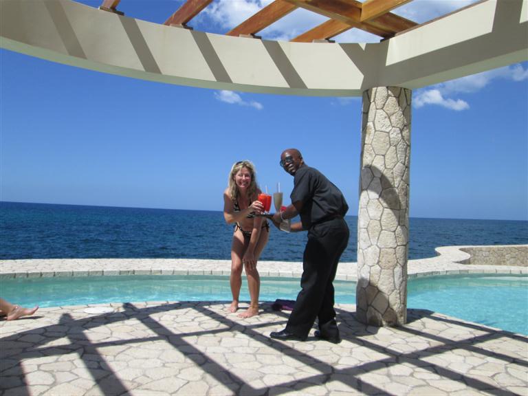 We also met up with M&G from Montreal at Fun Holiday who were treating Barbara and her kids to an afternoon at Fun Holiday. We also enjoyed their company at the end of the week when they dropped by Seastar on their last afternoon in Negril and we enjoyed some lunch and drinks and great conversation. We took this opportunity to have a photo op with Rambo, security extraordinaire!